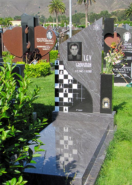- Памятники на еврейском кладбище Льву Гройсману, Hills of Eternity. Колма, Калифорния, США