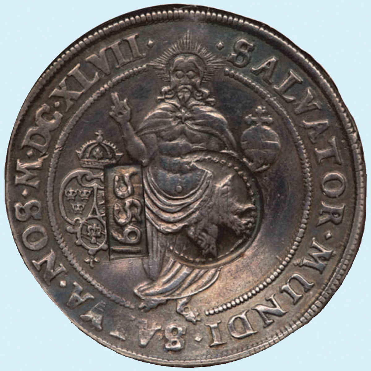 Памятная серебряная медаль “На рождение Петра I». 1672. Мастер Петр Пауль Вернер (продано: $ 10,500)