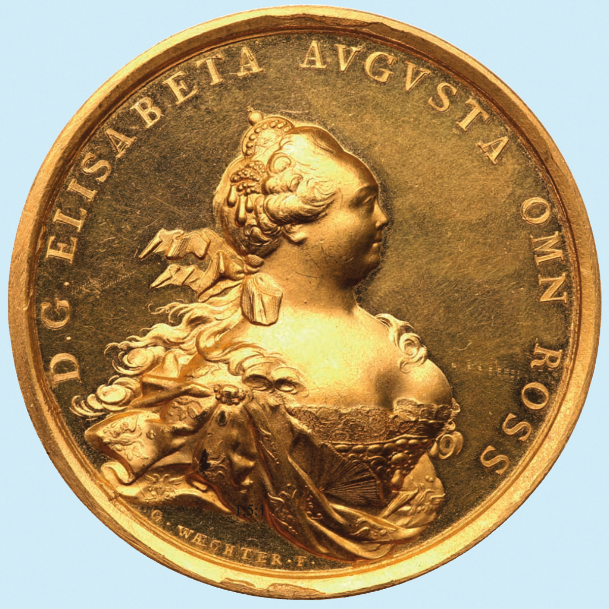 Золотая медаль 50 дукатов. 1752. Мастер Георг Христиан Вехтер. (продано: $ 280,000)