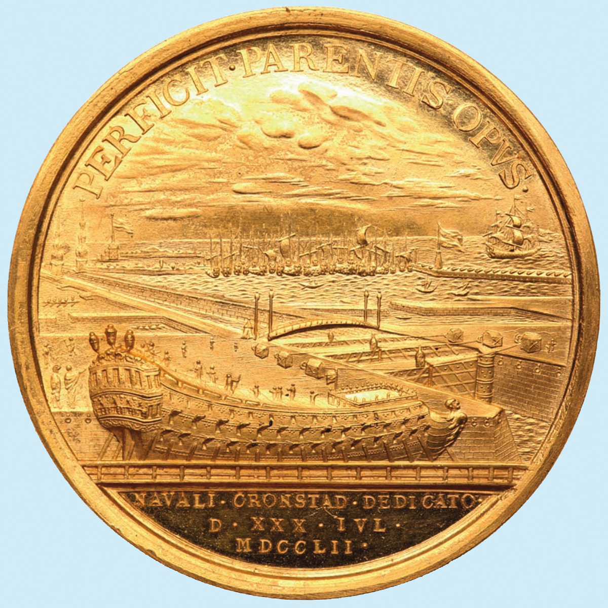 Фаворитом торгов Нью-Йоркской нумизматической биржи в секции российской коллекции бесспорно стала Золотая медаль в 50 дукатов 1752 года, выполненная мастером Георгом Христианом Вехтером и отлитая в честь открытия Военно-Морской верфи в Кронштадте. Торги были чрезвычайно напряженными, но на радость продавца она была продана со значительным превышением стартовой цены — 280 тысяч против 200 тысяч американских Долларов. Покупатель был тоже счастлив, получив раритет, за который мог при других обстоятельствах заплатить гораздо дороже.