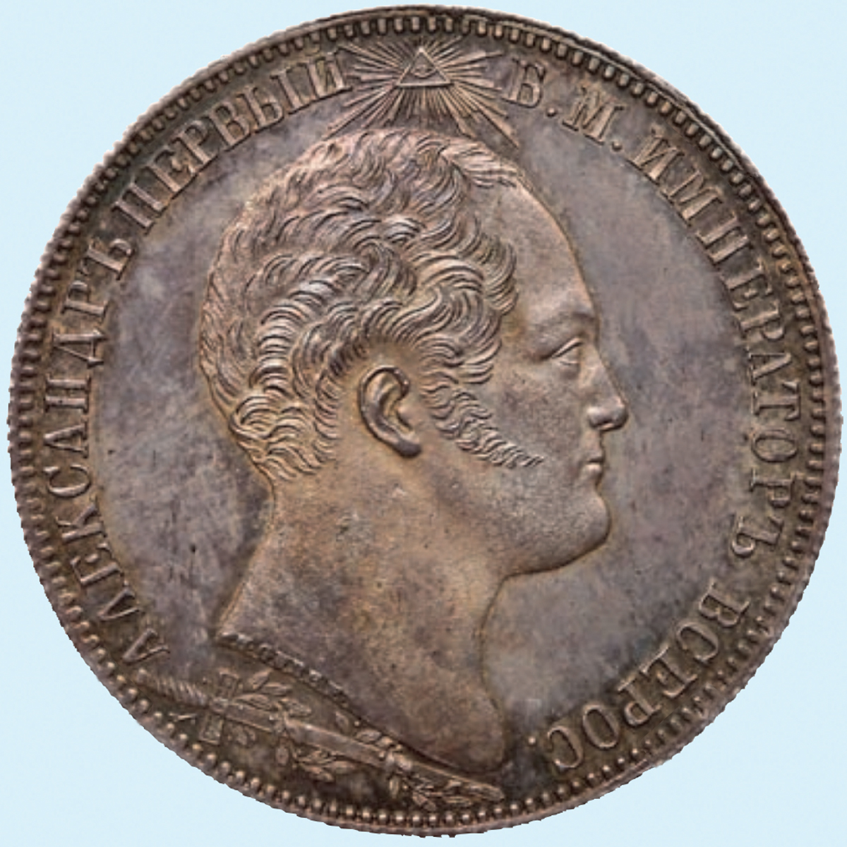 Памятный серебряный рубль в честь открытия колоны Александра I, 1834 (продан: $ 15,000)