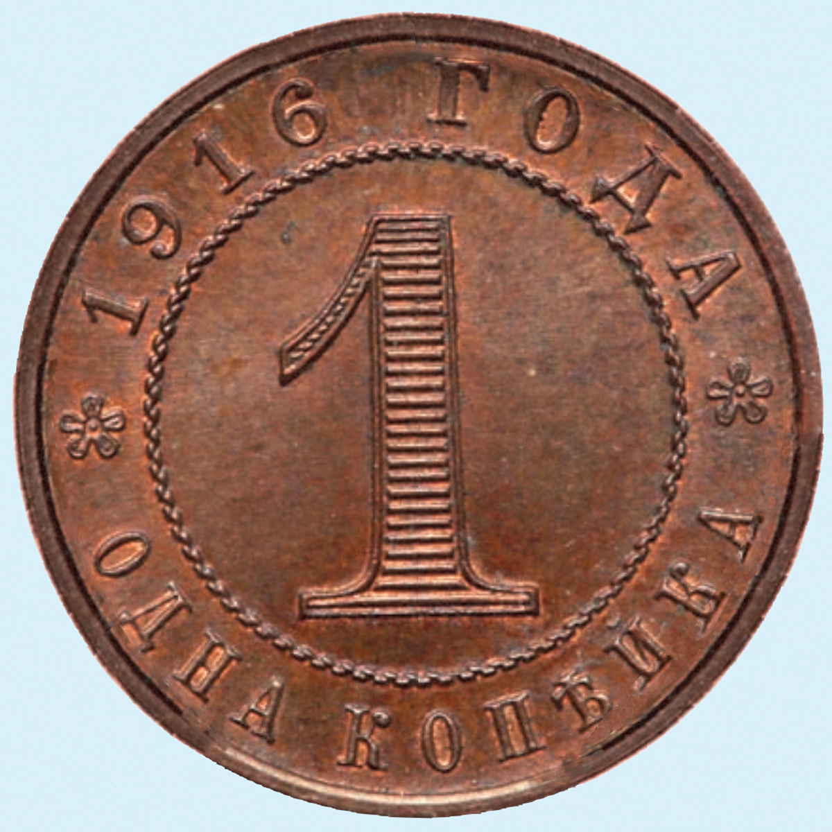 - Одна копейка 1916 года, аверс